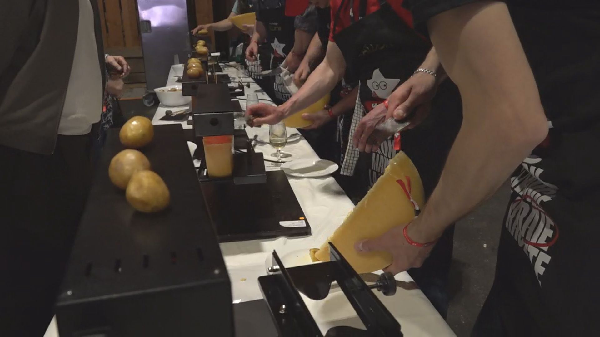 Ein Raclette nach dem anderen landet auf den Tellern. Dazu gibt’s Kartoffeln, Cornichons und Silberzwiebeln. Wir sind hier in Martigny und es schmeckt nicht nur nach Käse, sondern auch nach Weltrekord. Fast 5000 Menschen sind bei diesem XXL-Raclette-Plausch mit dabei. Über 350 Raclette-Helfer sind im Einsatz und arbeiten auf Hochtouren. Und alle haben ein grosses Ziel: Den Franzosen den Weltrekord – im wahrsten Sinne – „wegzuschmelzen“.