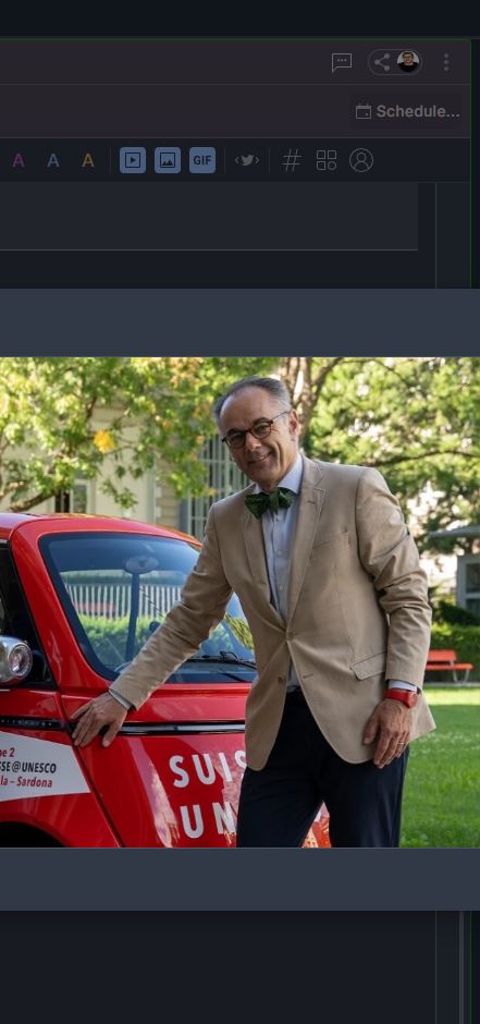 Mit dem roten Auto ist der neue Schweizer UNESCO-Botschafter in der Schweiz unterwegs. Heute hat er in Naters beim World Nature Forum Halt gemacht und sich die Gletscherwelt im Museum angeschaut. Eine Gelegenheit auch für die Stiftung, mit ihm ins Gespräch zu kommen und heikle Projekte vorzustellen.