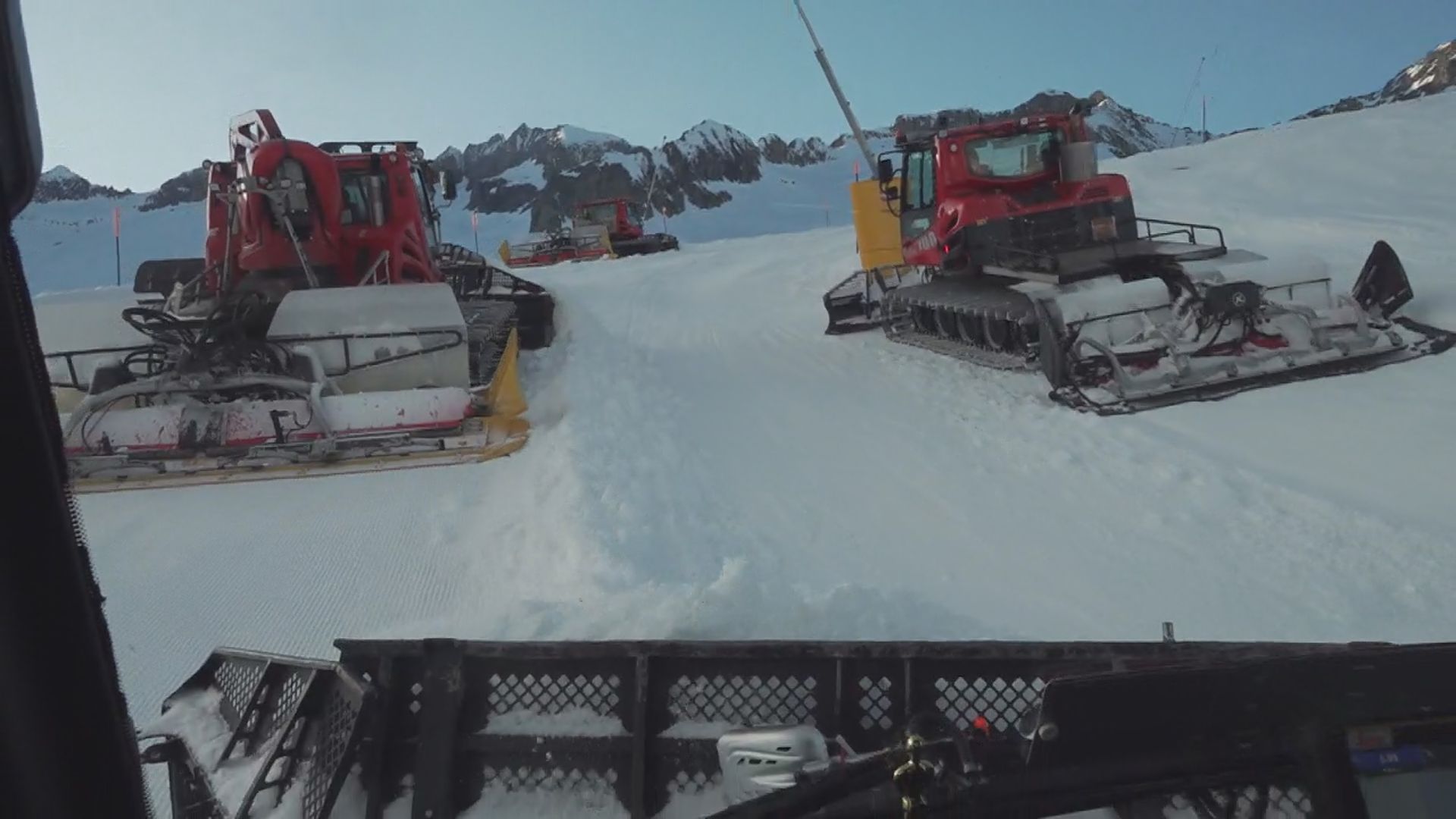 Mit bis zu 490 PS starken und rund elf Tonnen schweren Maschinen werden die Pisten für den nächsten Tag präpariert. Eine harte Arbeit, die auch mit grossen Gefahren verbunden sein kann. Wir haben die Arbeiten auf der Belalp begleitet.