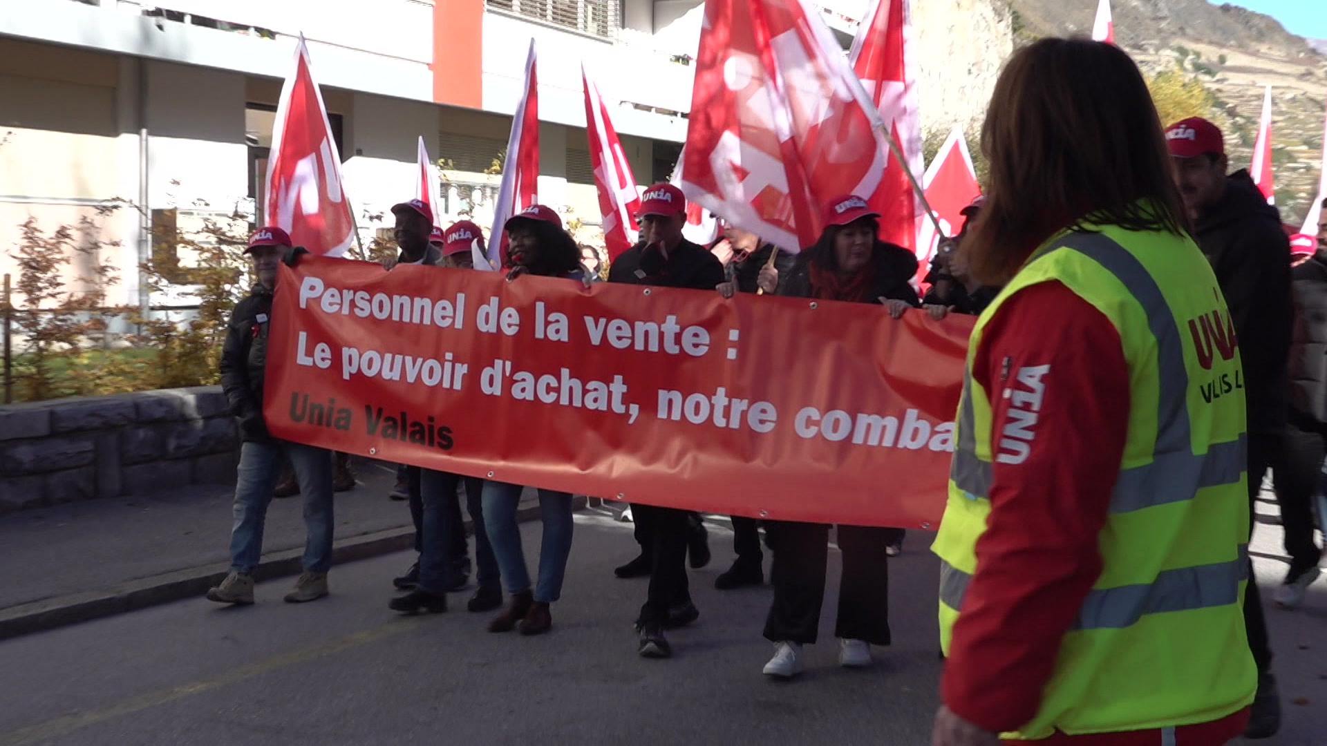 1000 personnes ont défilé dans les rues de Sion ce samedi. Elles ont participé à la première manifestation cantonale organisée par le syndicat Unia Valais. Objectif : obtenir des augmentations de salaire. Une mobilisation cantonale réussie pour le syndicat.