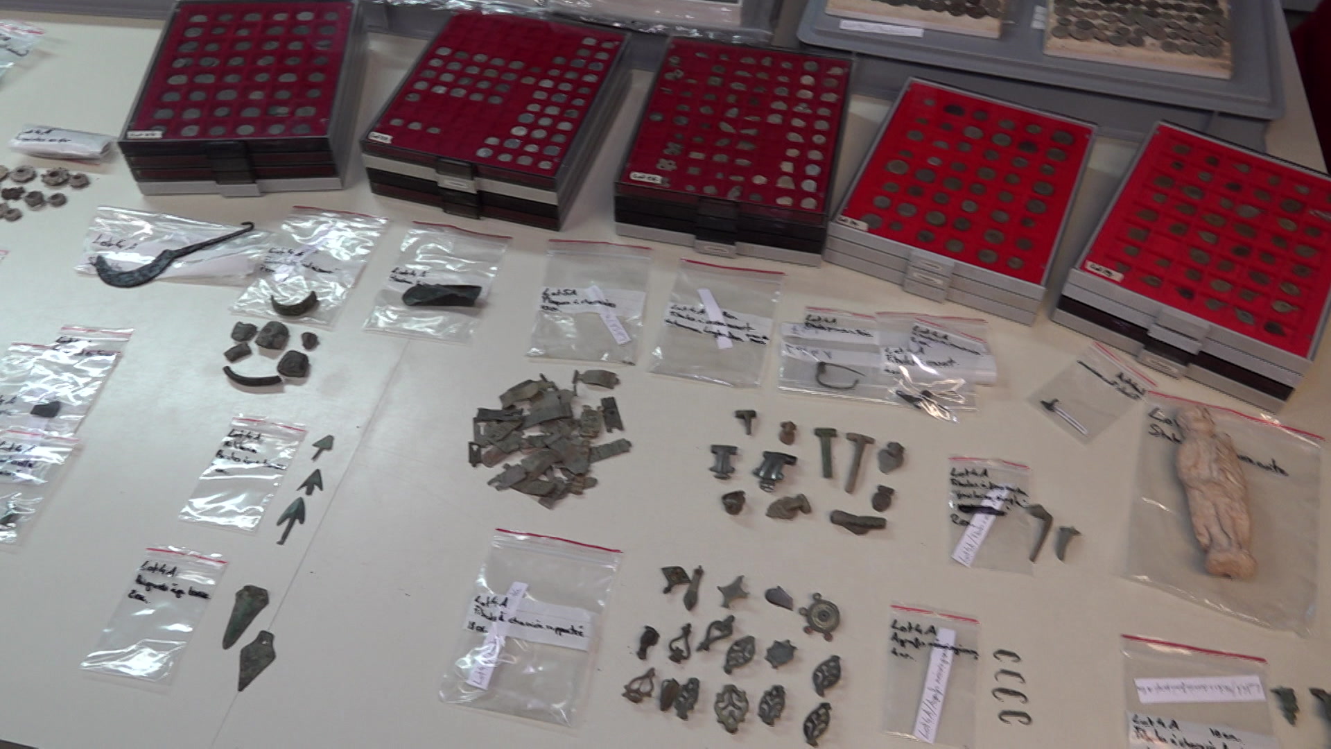 11’000 objets archéologiques saisis par la Police valaisanne. Des artefacts récoltés illégalement avec un détecteur de métaux et retrouvés chez un homme de 51 ans. L’Office cantonal d’archéologie qui participe à l’enquête nous a ouvert le dépôt où est entreposé ce butin. Reportage!