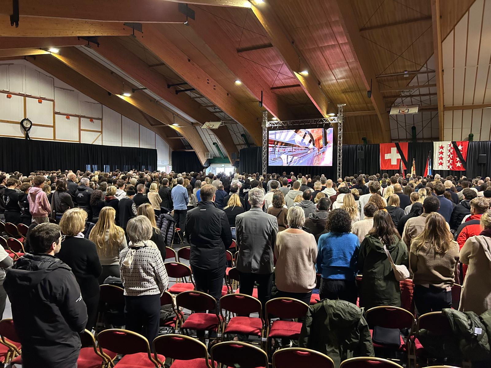 La cérémonie d’hommage a été suivie à Crans-Montana, où un dispositif spécial a notamment été installé au Régent. Il a permis aux 1’500 personnes inscrites d’y suivre l’événement de Martigny, retransmis dans deux salles du centre de congrès. D’autres endroits du Valais se sont également associés au recueillement.